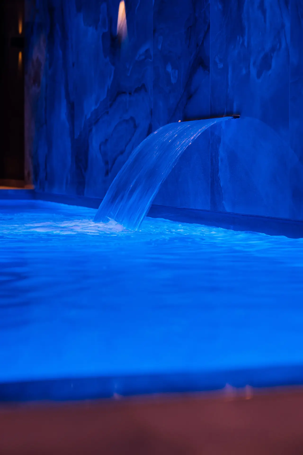 Ontspan of zwem actief in heerlijk warm water, compleet met waterval en jetstream.